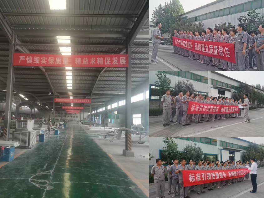 以總經(jīng)辦為主導(dǎo),各部門積極配合,在廠區(qū)張貼標(biāo)語,懸掛橫幅。大力開展質(zhì)量月宣傳活動(dòng),強(qiáng)化員工個(gè)人責(zé)任意識、質(zhì)量意識,積極營造質(zhì)量月活動(dòng)濃厚氛圍。