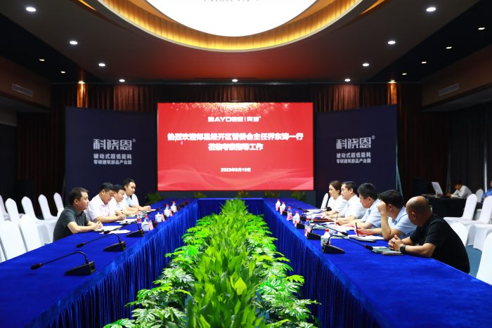 王總首先對(duì)喬?hào)|濤主任一行的到來(lái)表示熱烈的歡迎,他說(shuō),貝迪集團(tuán)十余年來(lái)始終堅(jiān)持綠色低碳可持續(xù)的發(fā)展理念,在綠色型材、超低能耗系統(tǒng)門(mén)窗、生物基可降解材料等領(lǐng)域持續(xù)深耕,已經(jīng)成為行業(yè)知名品牌。目前貝迪集團(tuán)正在推進(jìn)新園區(qū)高質(zhì)量建設(shè),加快推進(jìn)產(chǎn)業(yè)研發(fā)升級(jí),提升核心競(jìng)爭(zhēng)力,希望有機(jī)會(huì)能同郟縣經(jīng)開(kāi)區(qū)攜手合作、共贏未來(lái)。