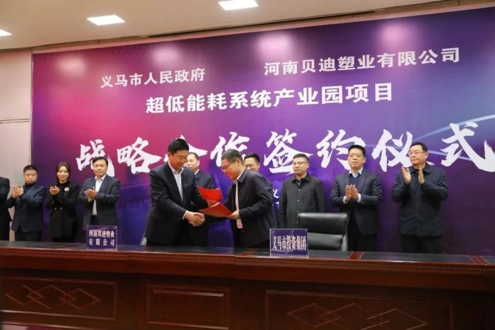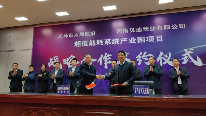 11月25日上午,河南貝迪超低能耗系統(tǒng)產(chǎn)業(yè)園項(xiàng)目簽約儀式在義馬市迎賓館舉行。貝迪集團(tuán)總經(jīng)理靳建安、副總經(jīng)理馮國武,集團(tuán)領(lǐng)導(dǎo)趙新國、張雪麗、杜彬出席簽約儀式;義馬市委副書記、市長姚振波,市委副書記楊東克,常務(wù)副市長周強(qiáng),義馬市政府辦、發(fā)改委、投資集團(tuán)、自然資源和規(guī)劃局等部門主要負(fù)責(zé)人參加簽約儀式。