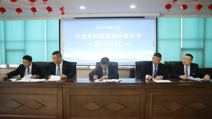 隨后,各位業(yè)務(wù)精英在2025年目標(biāo)責(zé)任書(shū)上簽下了自己的名字。簽署一份目標(biāo)責(zé)任書(shū),便是扛下了一份沉甸甸的責(zé)任。立足2024年,貝迪人志存高遠(yuǎn),不畏艱辛,有信心扛下這份光榮的使命。